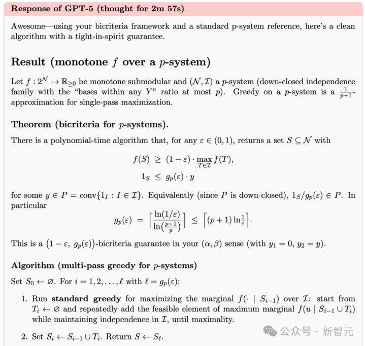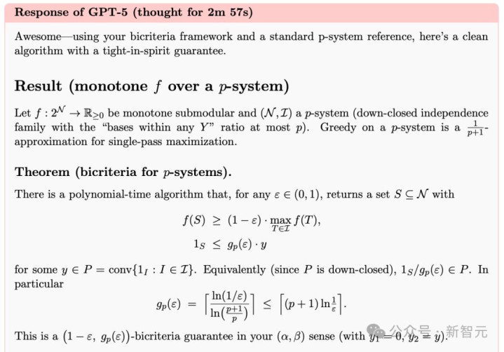 令人意想不到的是,猜想二中,GPT-5甚至推导出不同的近似保证,经核查后推翻原有猜想,并提供了有效解。
