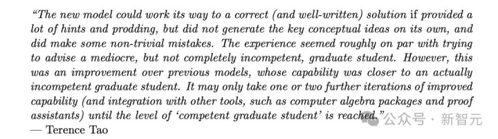 此前,陶哲轩曾分享了自己与OpenAI o1合作经验,生动地将其比作「指导一名平庸,但并非完全无能的研究生」。